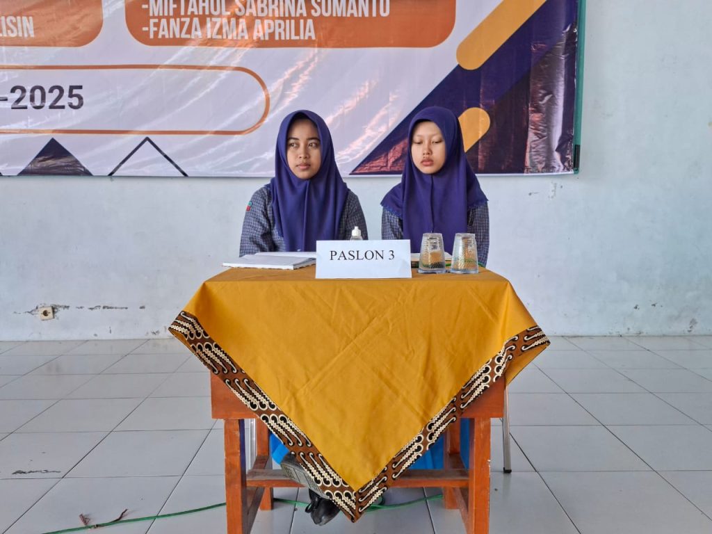 Kab.Kediri (MAN 3) – Tiga pasang kandidat ketua dan wakil ketua OSIMA MAN 3 Kediri periode 2025-2026 beradu visi dan misi dalam debat terbuka, hari ini, Rabu (12/8) di Aula Bawah MAN 3 Kediri. Acara yang berlangsung meriah ini menjadi ajang bagi para calon untuk meyakinkan pemilih. Setiap kandidat memaparkan program kerja unggulan, mulai dari peningkatan prestasi akademik hingga kegiatan ekstrakurikuler. Dipandu oleh MC Jimmy dihadiri 166 perwakilan kelas dan tiga guru pendamping, debat ini menghadirkan pasangan calon nomor urut 1, Sella Fauziarista dan Giral Din Julian; nomor urut 2, Mustofa Akmalullail dan Fathur Rachman Muklisin; serta nomor urut 3, Miftahul Shabrina Sumanto dan Fanza Isma.