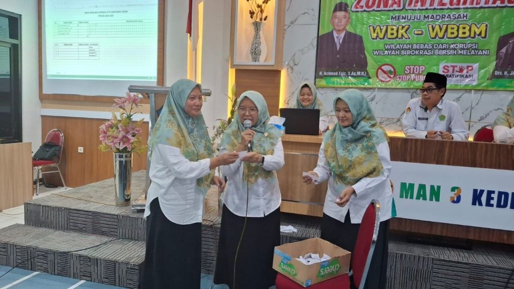 Kab.Kediri (MAN 3) – Madrasah Aliyah Negeri (MAN) 3 Kediri menyelenggarakan Rapat Anggota Tahunan (RAT) Koperasi At-Ta’awun periode buku 2025-2026 di Aula Al-Ikhlas, Selasa (31/3). Agenda utama ini bertujuan memaparkan laporan pertanggungjawaban pengurus lama sekaligus menentukan nakhoda baru untuk masa bakti dua tahun ke depan. Acara dibuka dengan khidmat oleh MC Eko Sri Astutik yang dipandu dengan pembacaan Ummul Kitab.