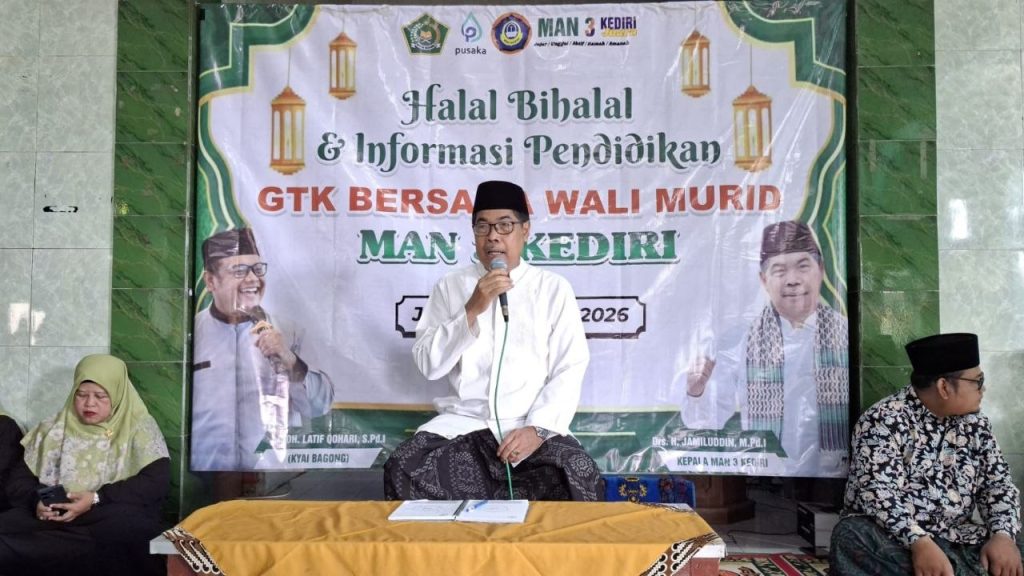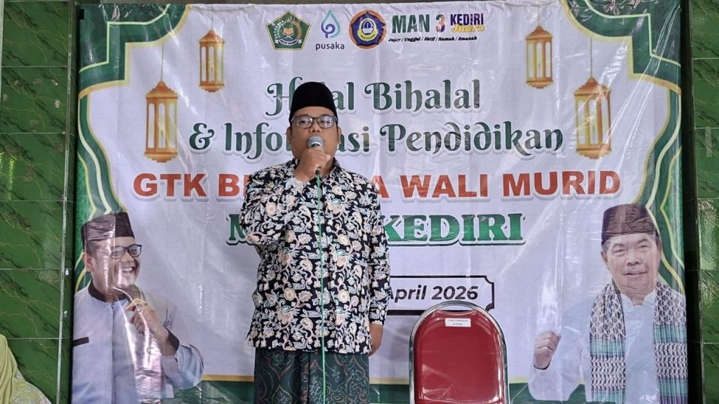 Kepala MAN 3 Kediri, Jamiluddin, dalam sambutannya menekankan pentingnya menjaga kerukunan melalui tradisi saling memaafkan. Beliau mengajak seluruh wali murid untuk aktif berkomunikasi dengan pihak madrasah demi perkembangan siswa. “Pagi yang penuh berkah ini, moga-moga silaturahim kita membawa manfaat untuk kita semua. Maturnuwun sanget atas kehadiran Njenengan semua. Makna Halal Bihalal ini luar biasa, walau tidak hari raya kita tetap bermaafan. Indahnya hidup saling memaafkan, ini tradisi yang baik. Monggo didoakan putra-putrinya, jika ada informasi apa pun silakan langsung dikomunikasikan dengan pihak madrasah,” ujar Jamiluddin.